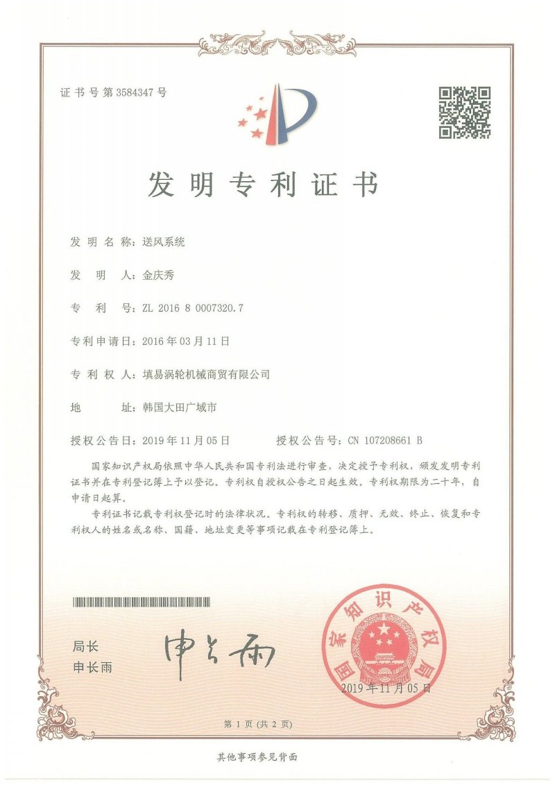 专利送风系统